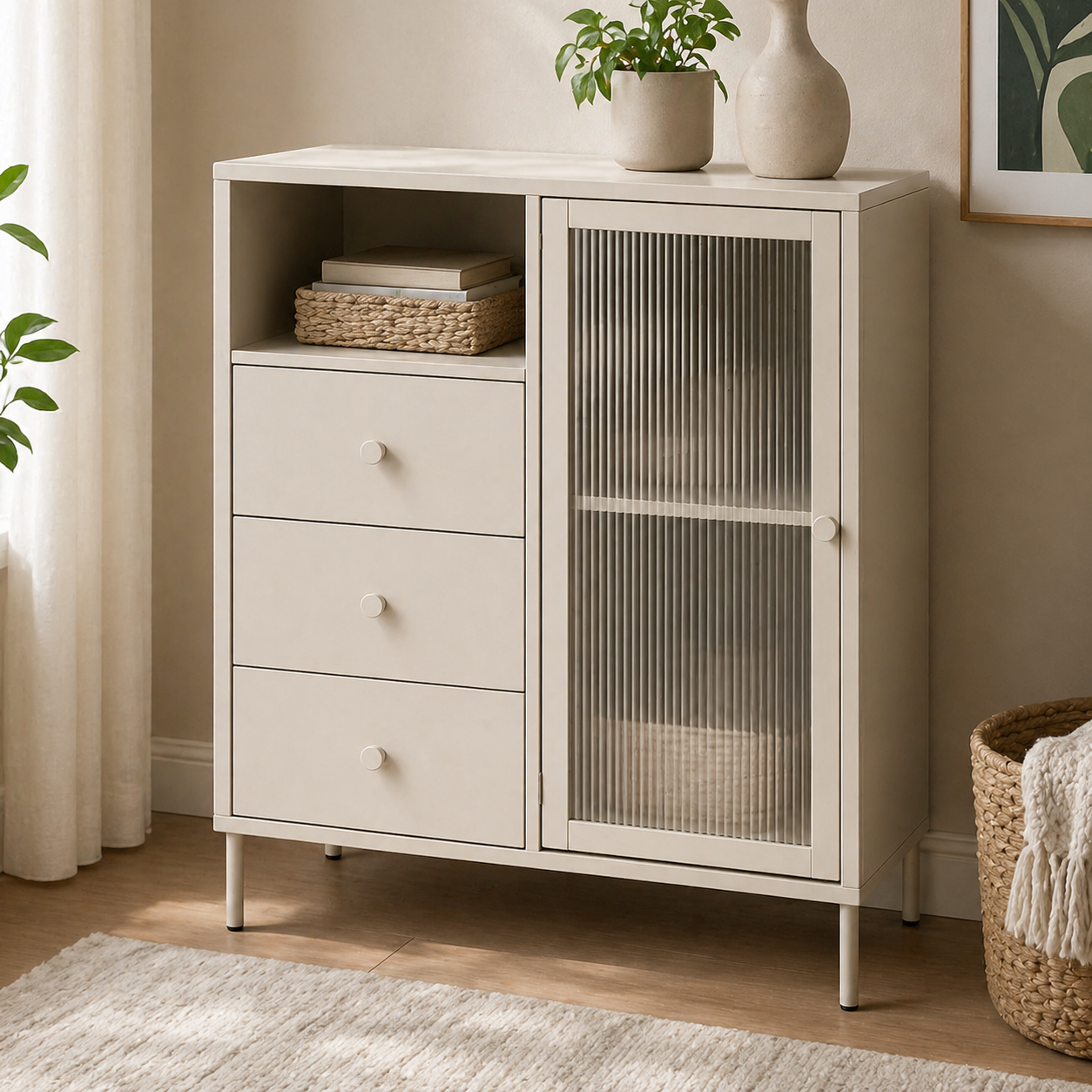 Muebles de almacenamiento que combinan diseño limpio, espacio práctico y una estética suave para dormitorios, salones y rincones acogedores